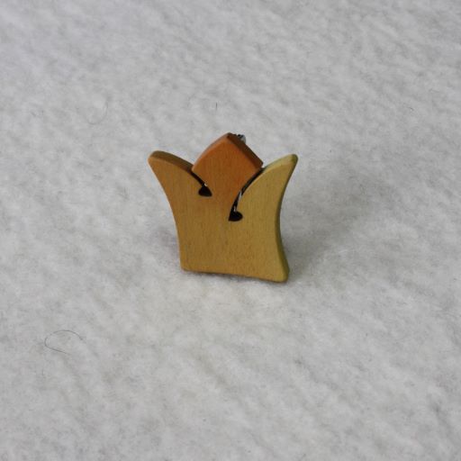 Anstecknadel auf dem Holz fest geschraubt und verriegelbar.