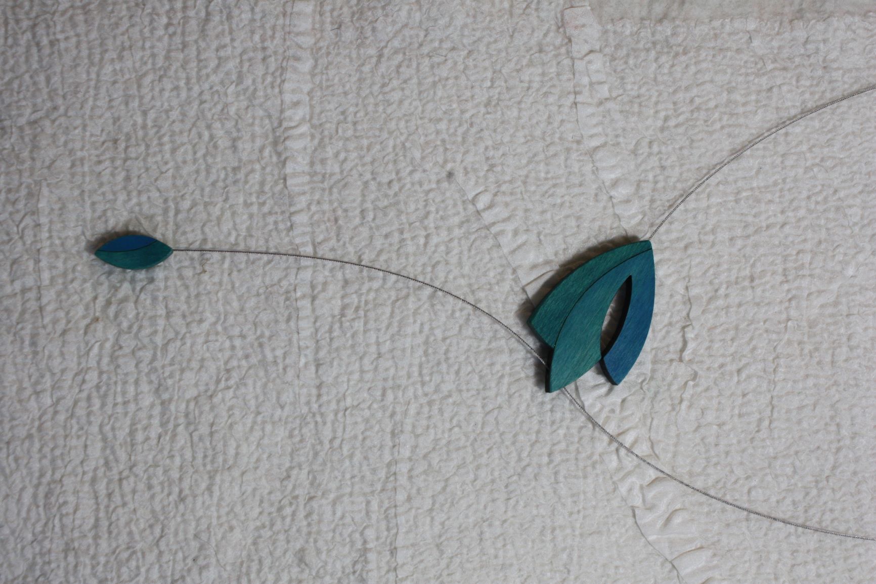 Die Kette mit dünnem Stahlseilcollier und hochwertigem Bajonettverschluss lässt sich durch ziehen in der Länge einstellen. Der Schwerpunkt dieses besonderen Teils ist auf dem Dekollete, aber durch das zusätzliche kleine Teil streckt sie optisch nach unten .