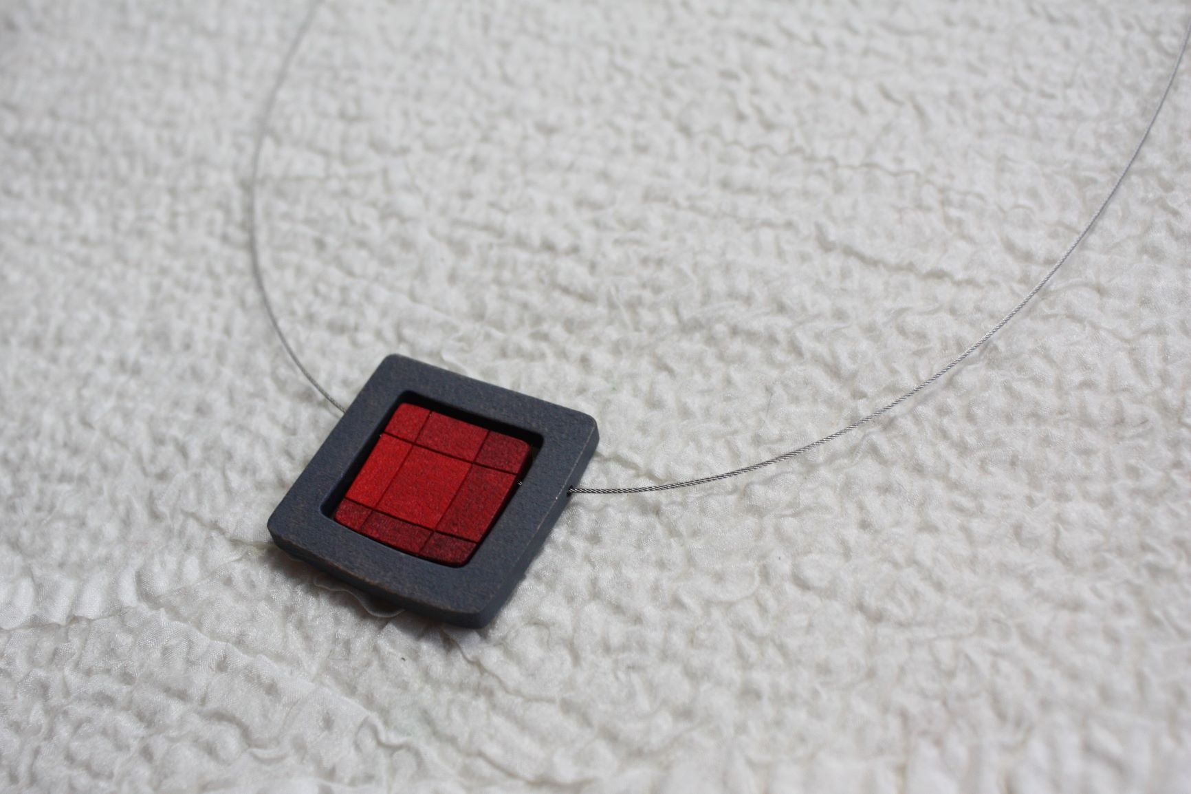 Der Anhänger ist handbemalt auf Ahornholz. Das kleine Quadrat bewegt sich im Rahmen. Originelle Variante der Caro- Kollektion.