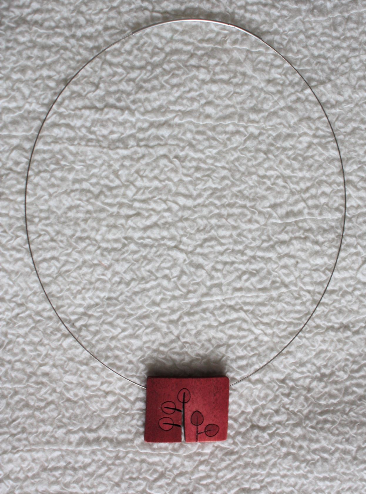 Collier mit handbemaltem Anhänger. Das Edelstahlseil ist fest eingeklebt und ca. 46 cm lang.