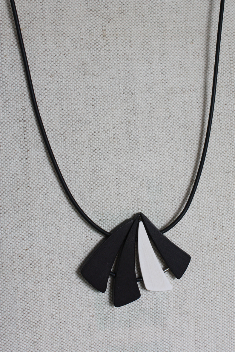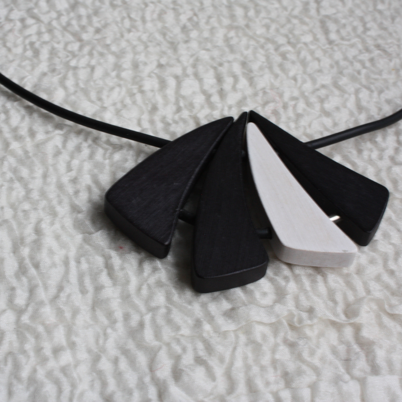 Das ist eine ausgefallene Variante mit 4 geschwungenen Holzteilen. Durch die Verbindungen aus Kautschuk nicht starr, sondern schön beweglich. Der Stahlstift gibt dem Teil seinen Extrapfiff.