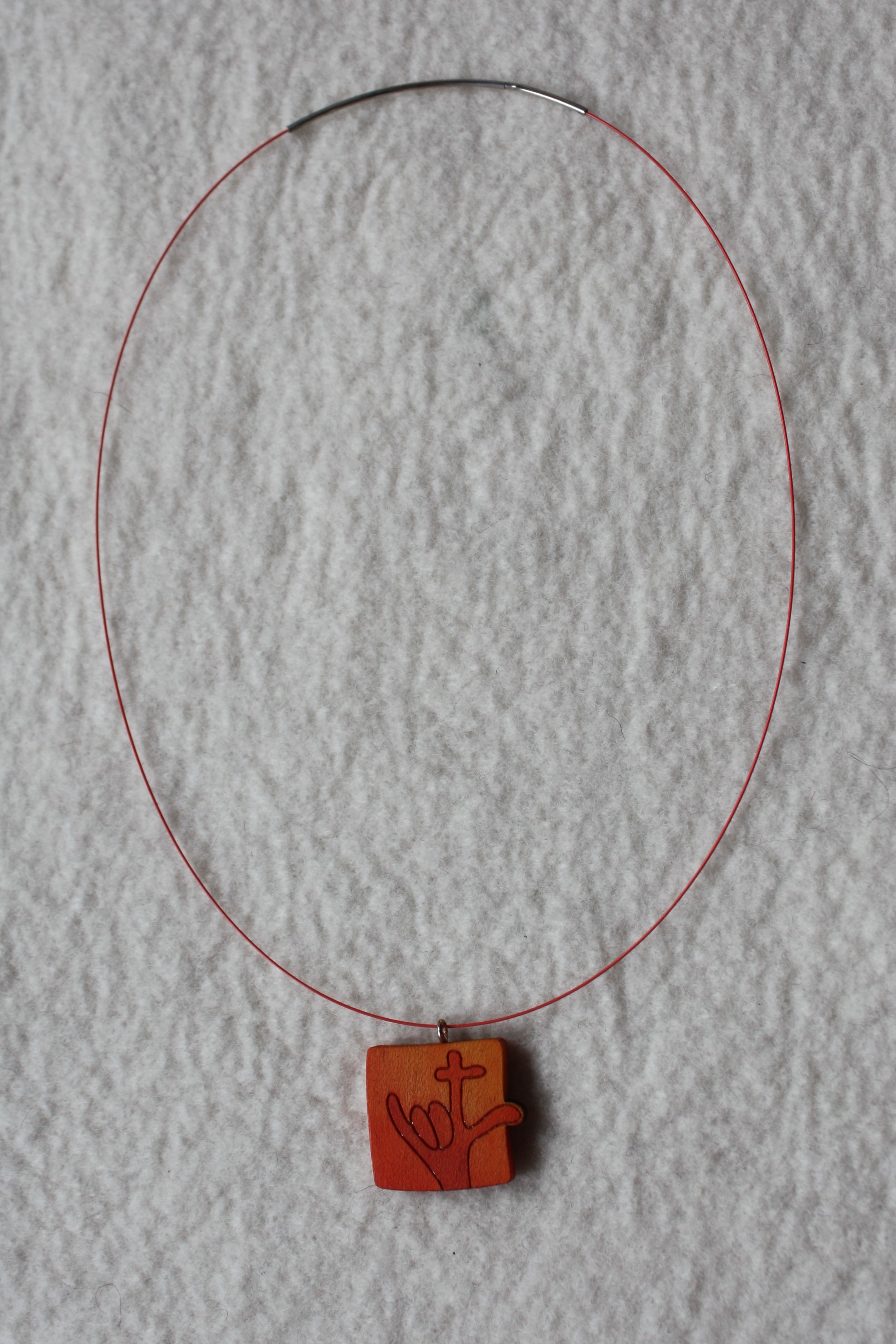 Collier mit Anhängermotiv aus der Zeichensprache in orange