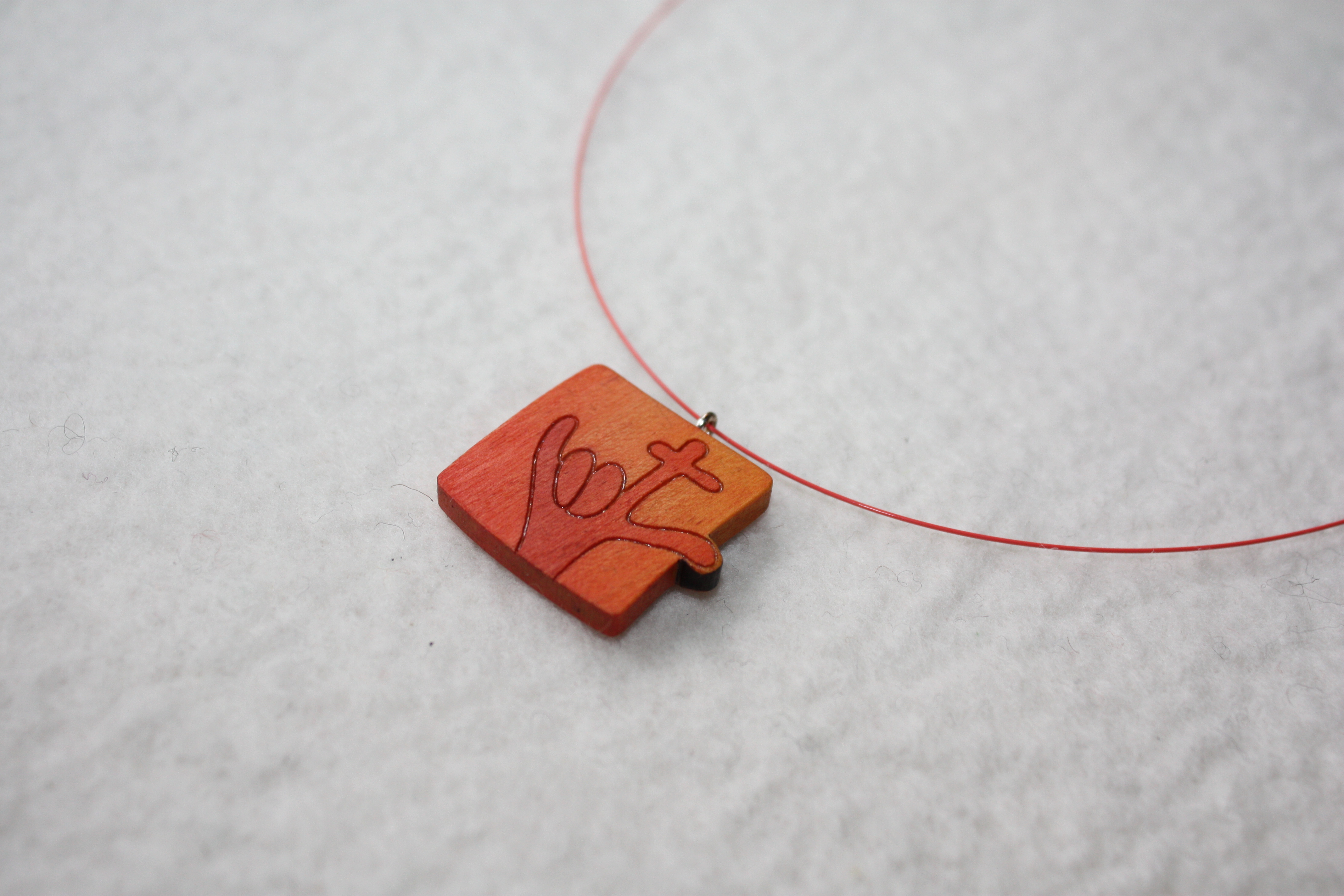 Der Anhänger dieses Schmuckstückes ist etwas Besonderes. Er ist nach einer Idee von Conny Langhof entstanden und von der Designerin Petra Frank in bemaltem Ahornholz umgesetzt worden. Jedes Teil wird so zu einem Farbunikat. Conny ist gehörlos. Das Motiv aus der internationalen Gebärdensprache bedeutet „Ich liebe dich“. Zusammen mit dem Querstrich, der mit dem Zeigefinger ein Kreuz bildet, bekommt er noch eine zusätzliche Bedeutung: „Jesus Christus liebt dich“. Das ist Conny besonders wichtig, und weil sie nicht sprechen kann, sagt sie das mit diesem Anhänger. So verstehen es Gehörlose und Hörende! Du musst wissen, da ist richtig Herzblut drin!