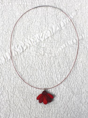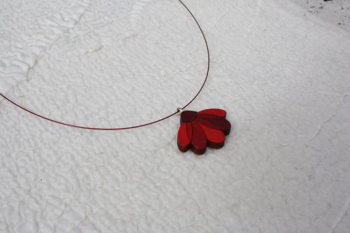 Dieses Collier ist sehr beliebt und wird bereits in vielen Farbstimmungen getragen. Durch die Farbüberlagerungen sind viele Nuancen entstanden. Die Blütenblätter wirken auf diese Weise sehr zart.