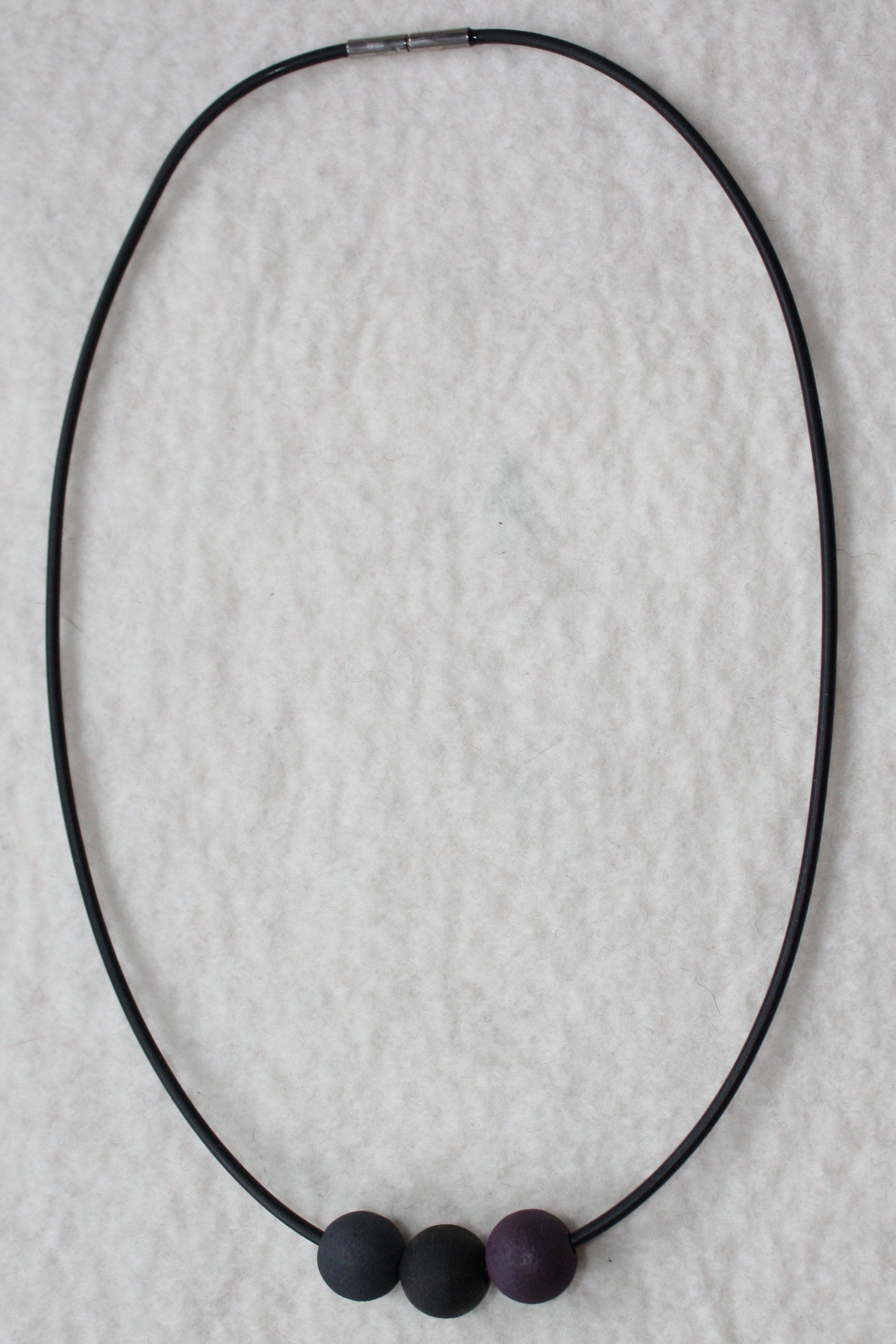 etwas Klassisch und doch auch wieder anders ist das Collier aus Naturkautschuk mit Bajonettverschluss. Die Holzperlen wurden von Hand gefärbt und im Farbton fein aufeinander abgestimmt.