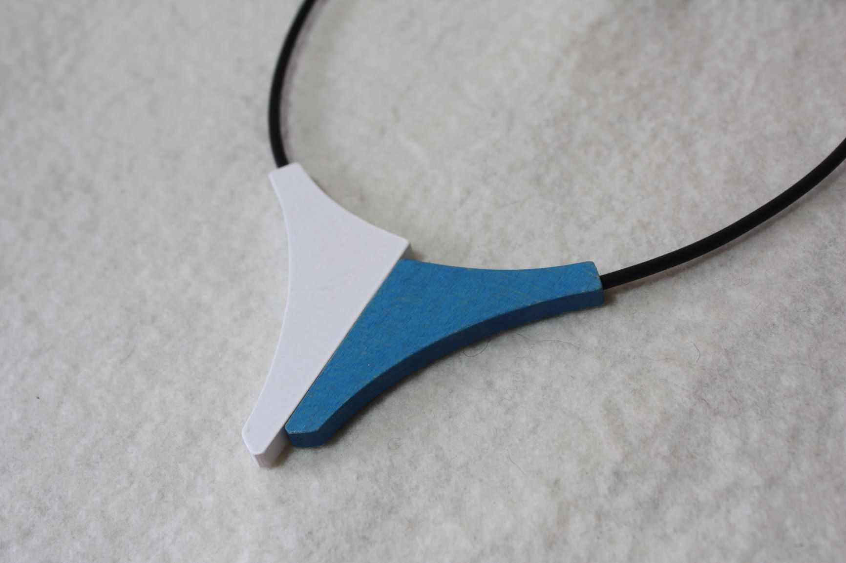 Eine schlicht geometrische kurze Kette, die es in sich hat: Magneten in den handbemalten Teilen aus Ahornholz schließen das Collier vorne. Keine Verrenkungen im Nacken mehr und kein Metallkontakt! Alleriker von Metallen müssen nicht auf dieses schöne Teil verzichten. Die Farben der beiden Holzteile sind sorgsam aufeinander abgestimmt. Eher rustikal mit dem 3mm starken Kautschukband. Eine Reminiszenz an das Bauhaus.