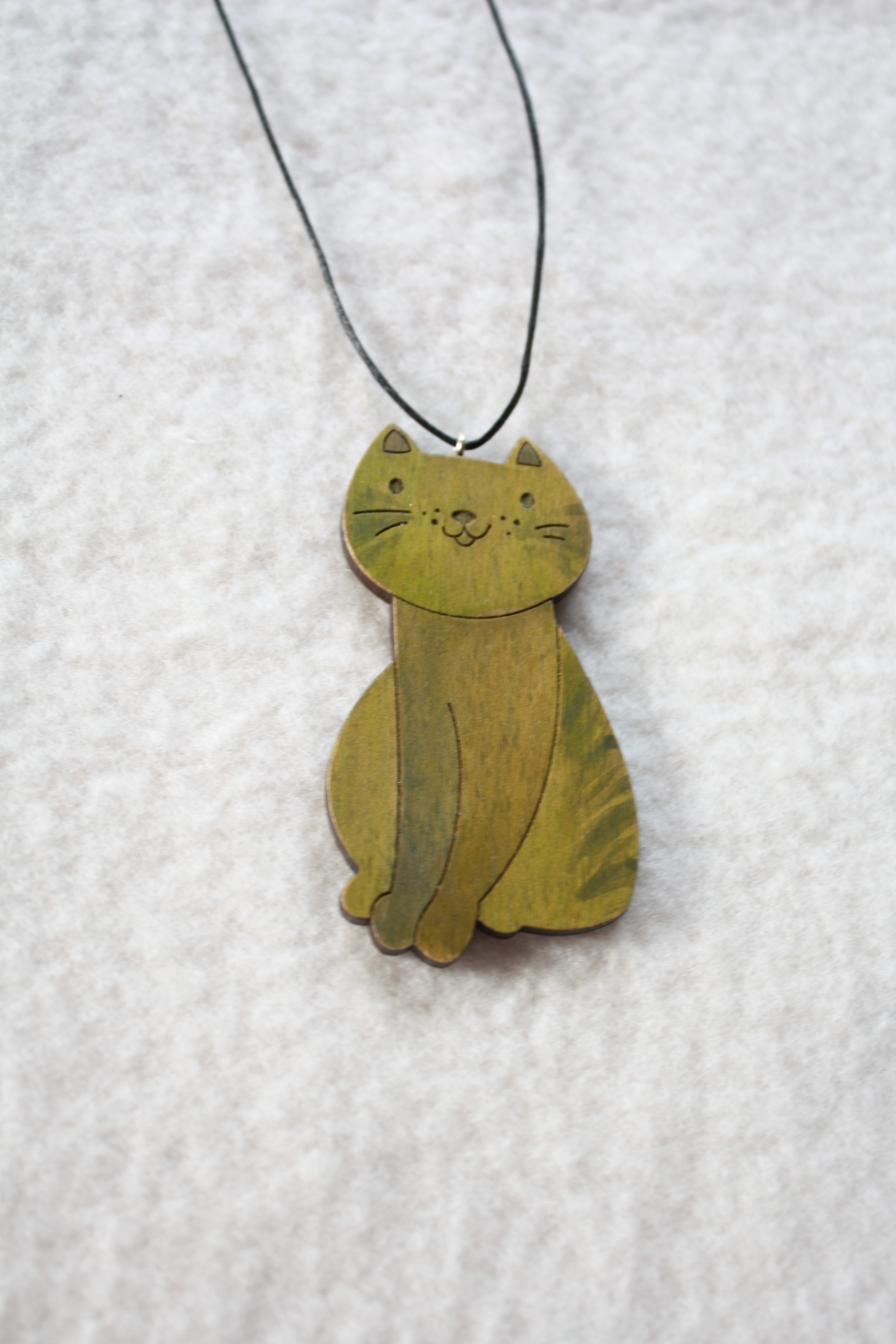 Kette aus bemaltem Ahorn mit schwarzem Textilband , das über Schiebeknoten längenreguliert werden kann. Bis ca 80 cm verstellbar
