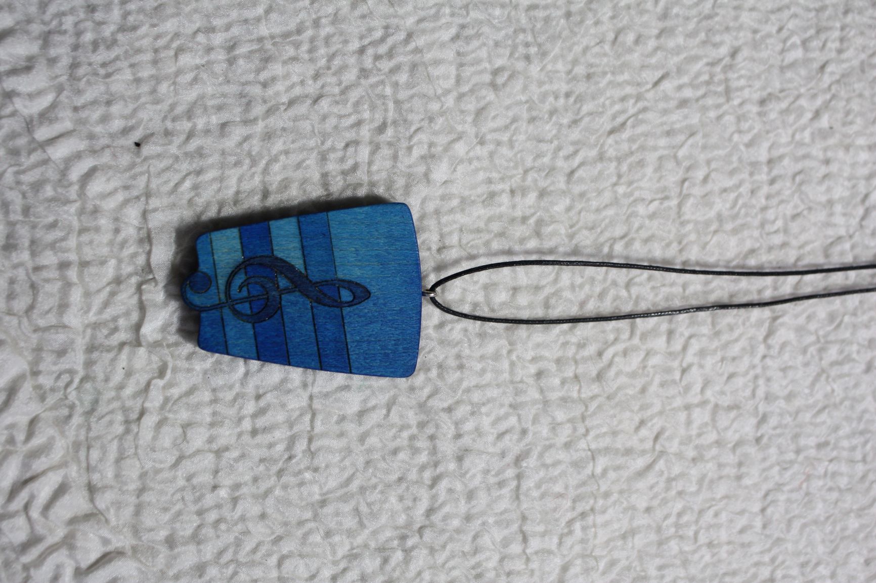 Kette aus bemaltem Ahorn mit schwarzem Lederband , das über Schiebeknoten längenreguliert werden kann.
