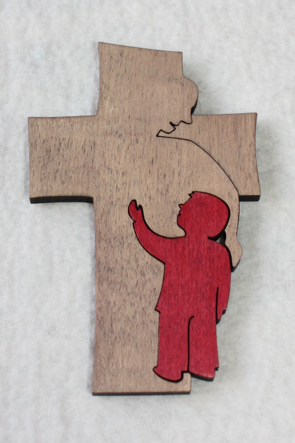 Kleines Kreuz mit Kind stein-rot