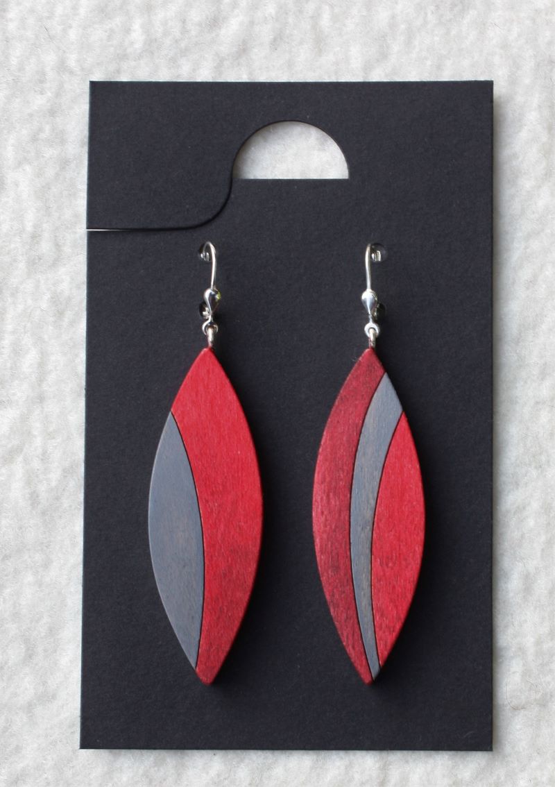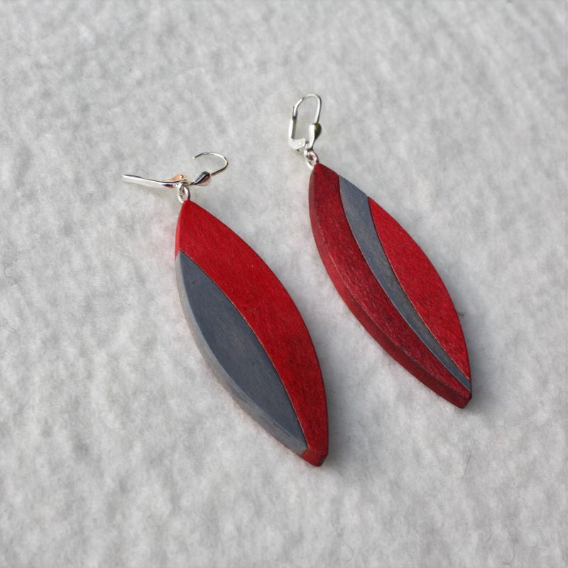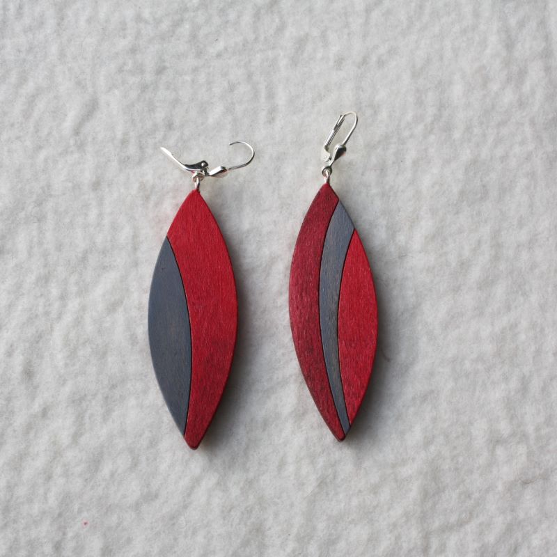 schliche Ohrhänger aus handbemaltem Ahornholz. Etwas verschieden, wie Paare hat oft sind- sieht man wahrscheinlich erst auf den zweiten Blick und dann ist es ein Aha-effekt. streckende Form