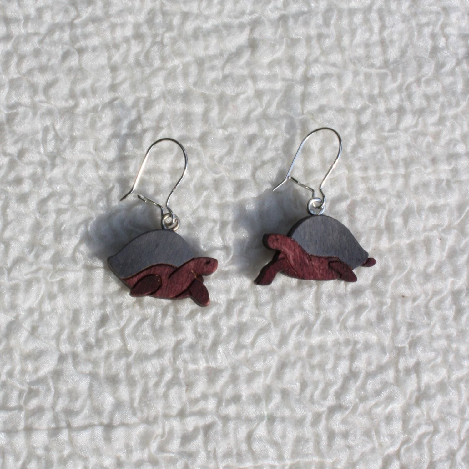 Ohrhängerpaar 'Schildkröten' grau-mokka
