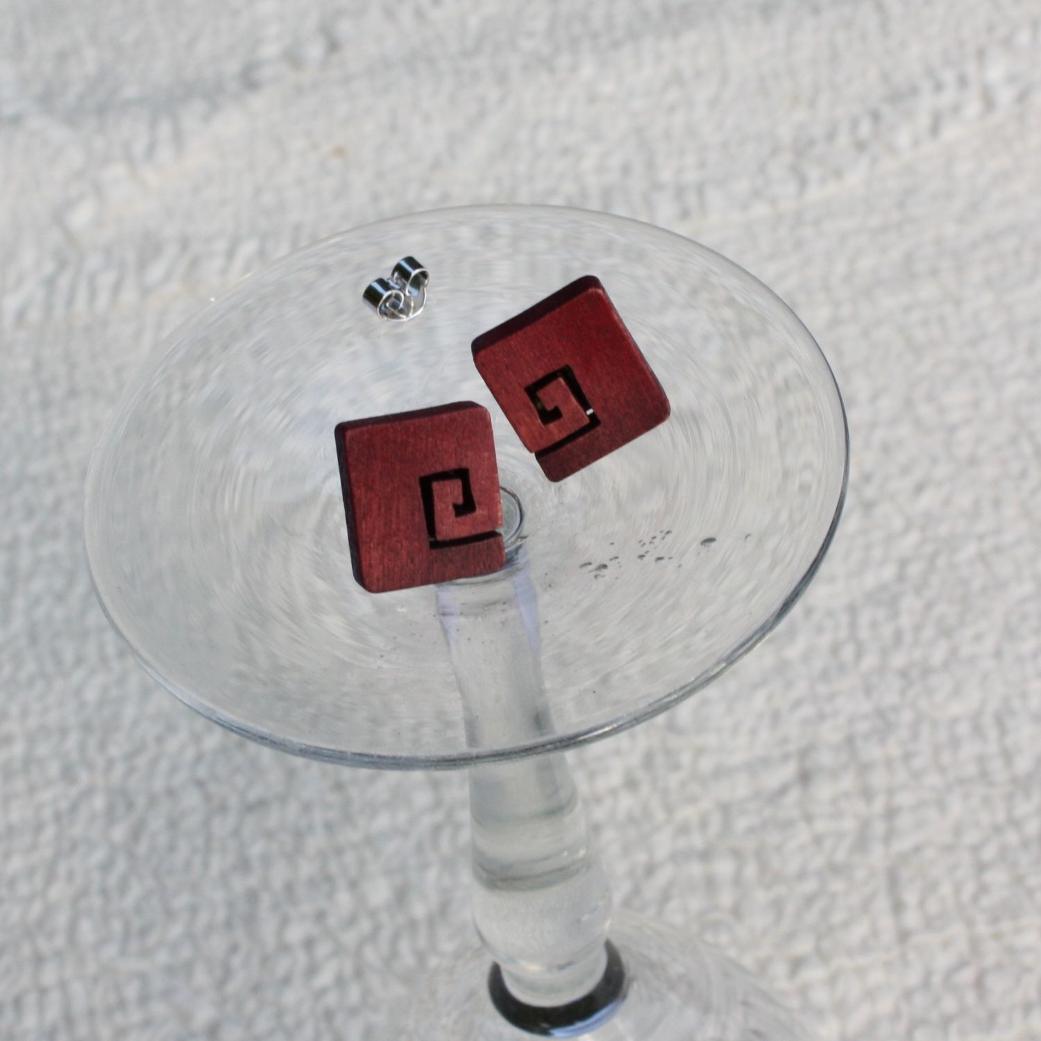 etwas größere Ohrstecker aus handbemaltem Ahornholz.