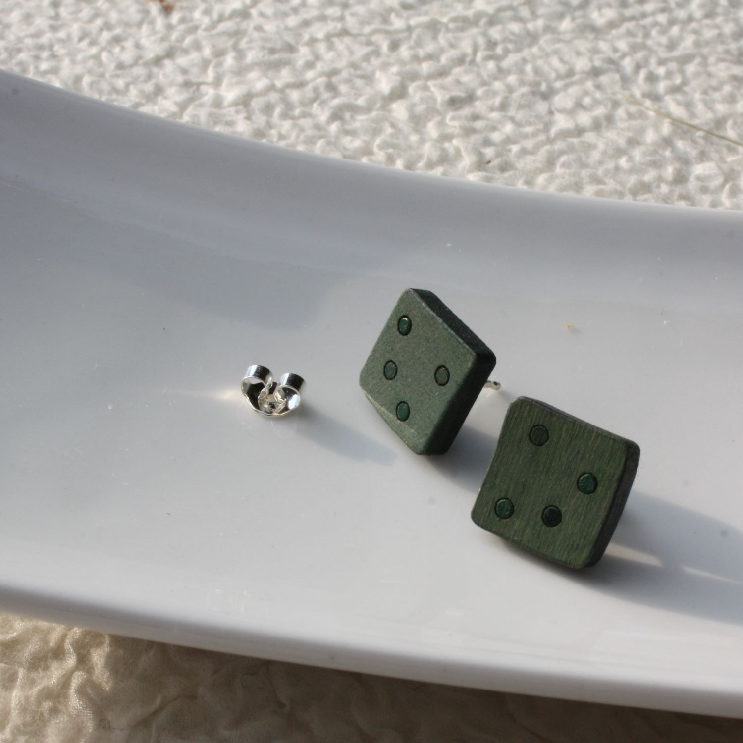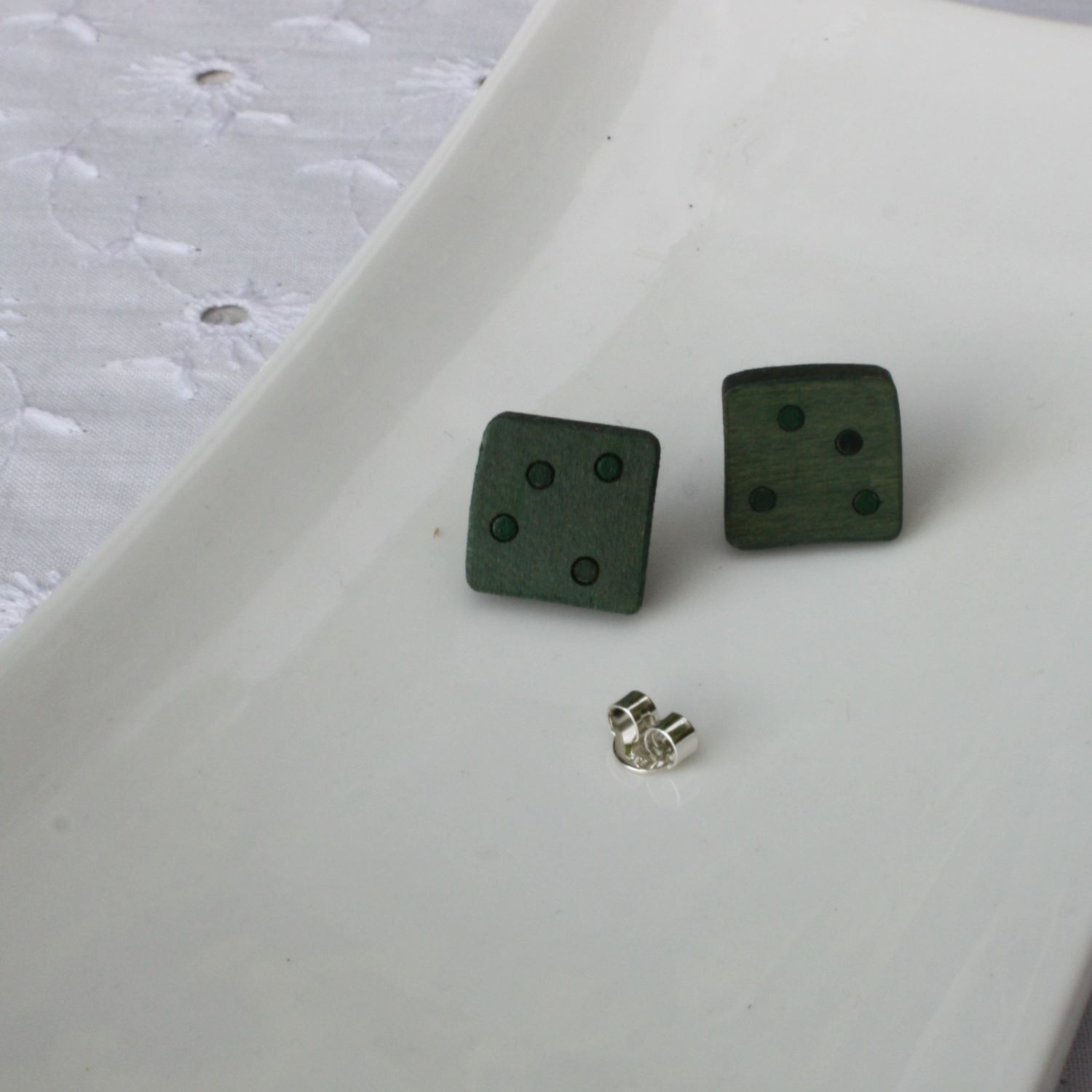 Ohrsteckerpaar 'caro pkt' dunkelgrün