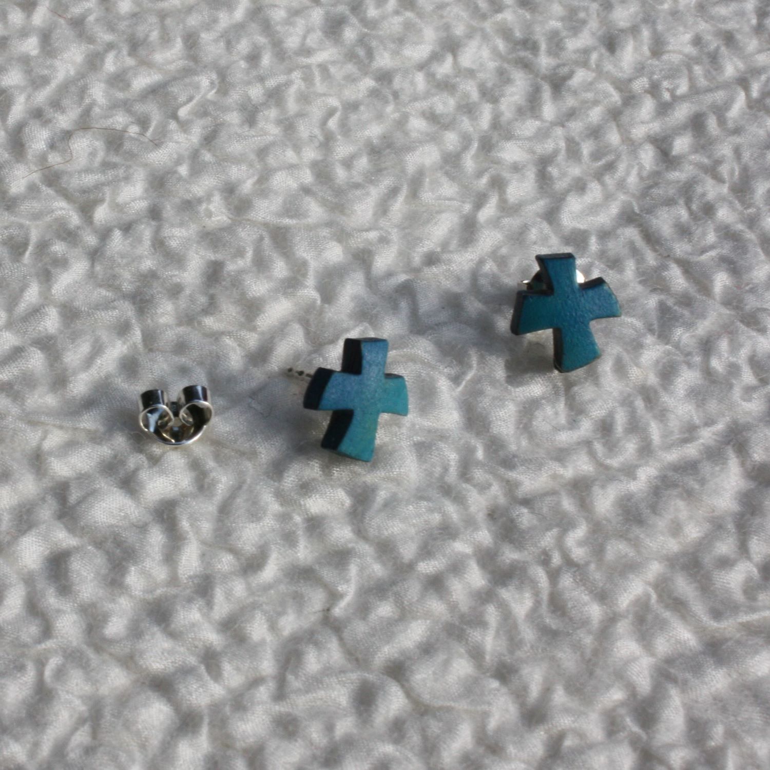 die handbemalten Ohrstecker aus Ahornholz haben eine schön gewölbte Form.