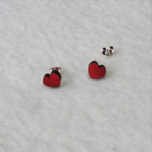 Die kleinen Herzchen aus Ahornholz sind besonders liebevoll geschliffen und bemalt worden. Gewölbte Oberfläche und mit echten Silbersteckern. Romantisch, aber nicht kitschig.