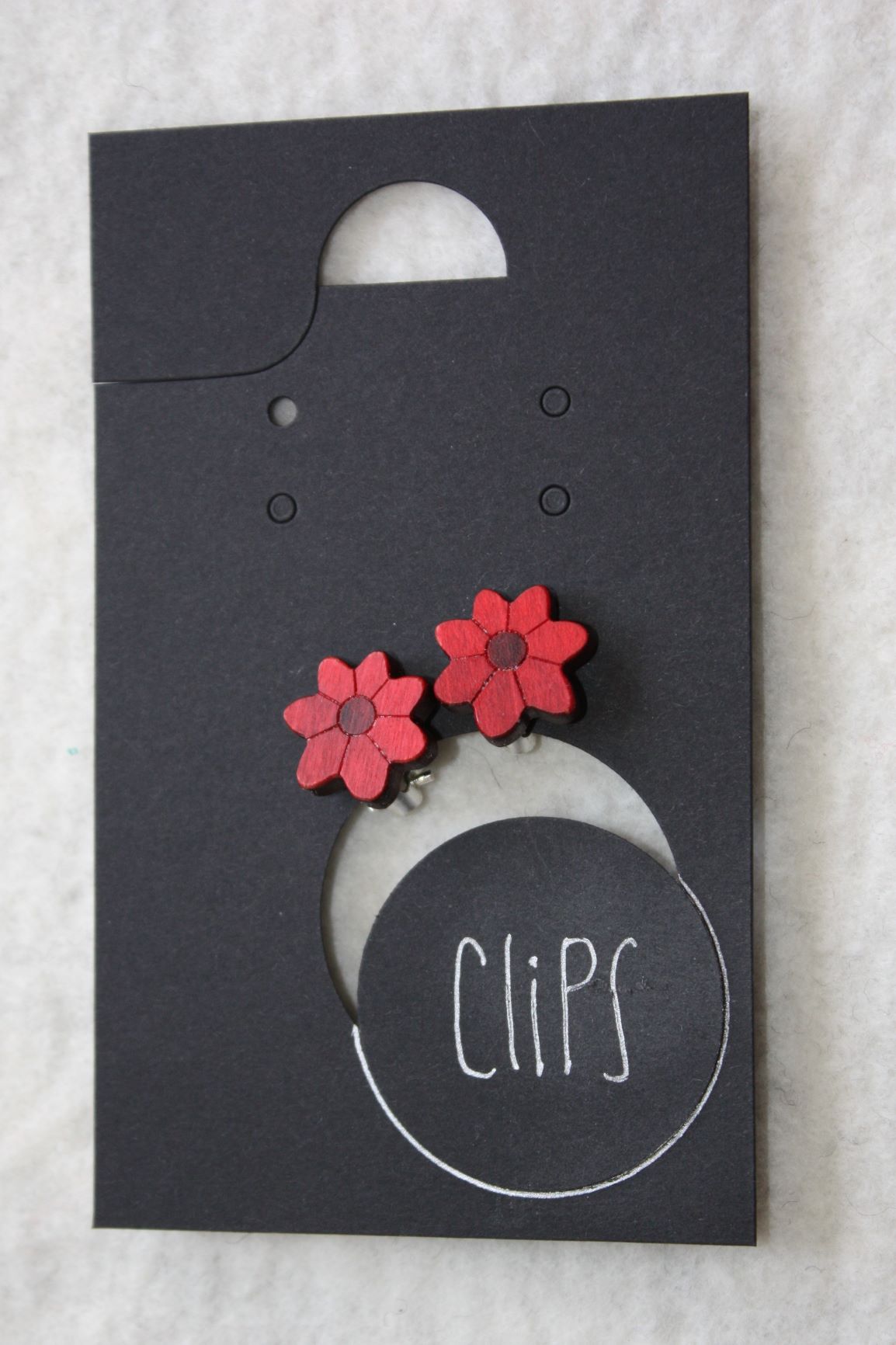 Clips aus bemaltem Ahorn. Die Clipmechanik ist aus Silber und schmerzt nicht beim Tragen. Der farbliche I-Punkt für alle Anlässe.