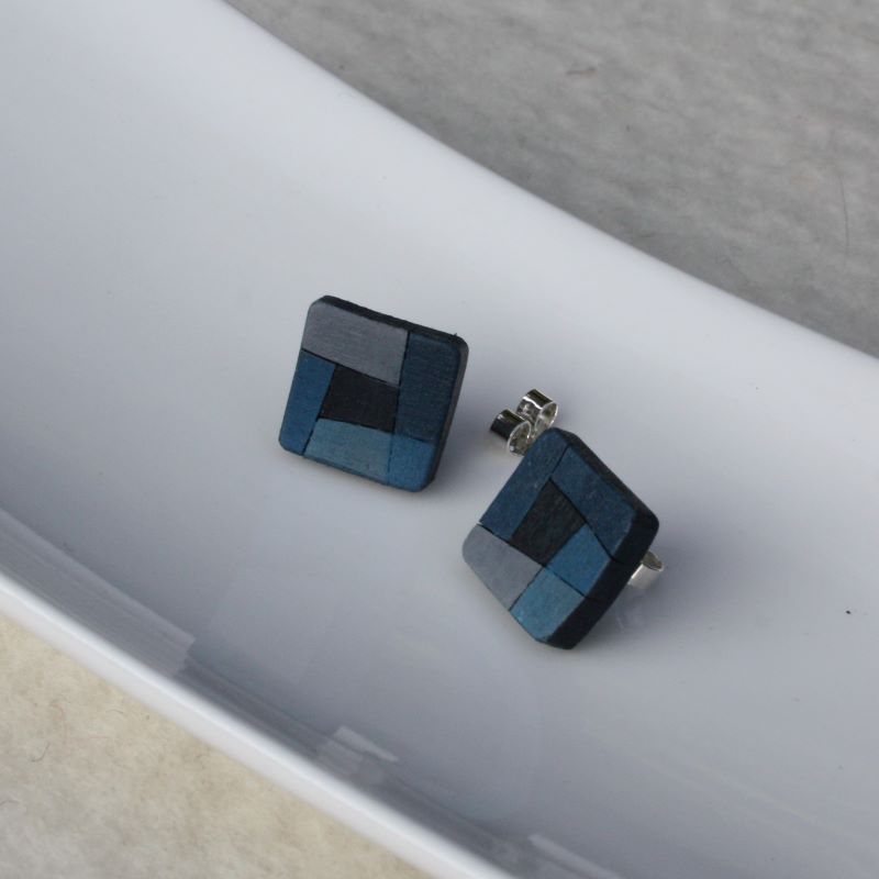 Ohrstecker mit Steckerteilen aus 925er Silber. Auf schwarzem Karton.