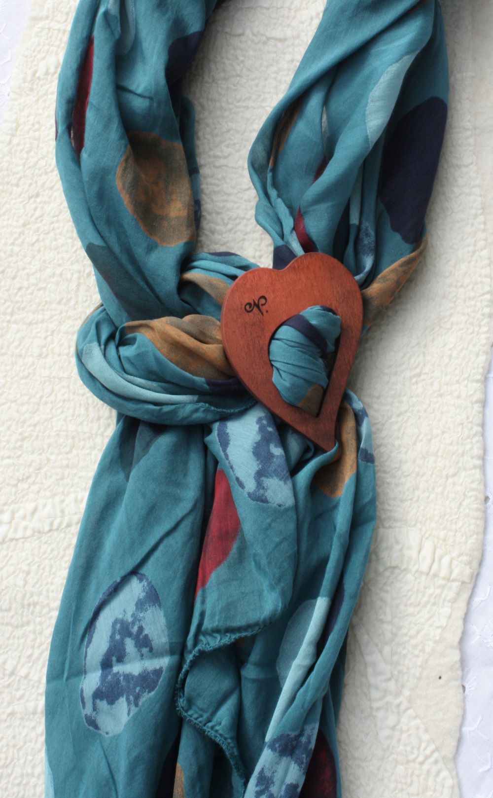 Mit diesem Schmuckstück kannst du mittelstarke Tücher und Schals wunderbar drapieren. Es ist herzförmig oder auch wie ein Blatt gestaltet.